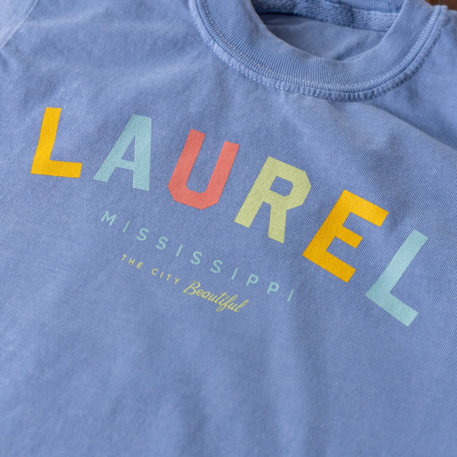 Our most colorful logo tee now in youth sizes! This Laurel Colors Youth T-shirt is perfect little summer souvenir for Laurel visitors for locals alike.