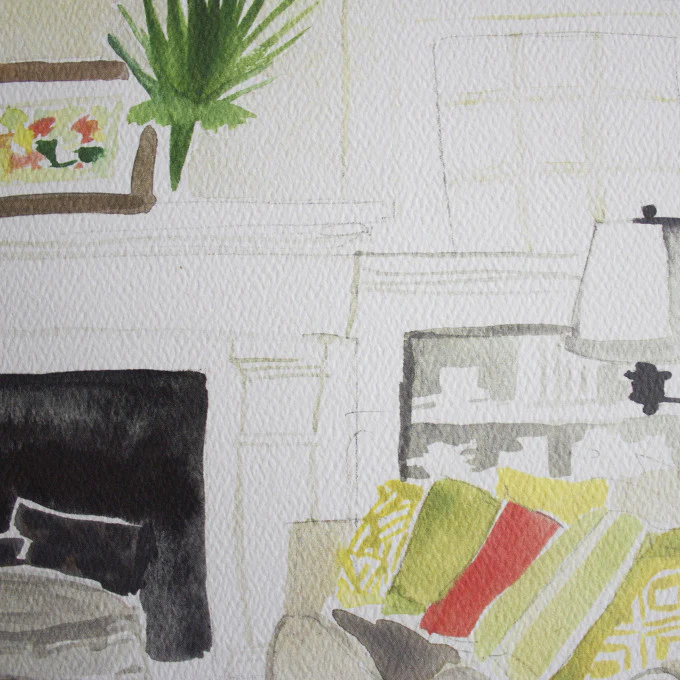 Living Room Watercolor (14" X 11")