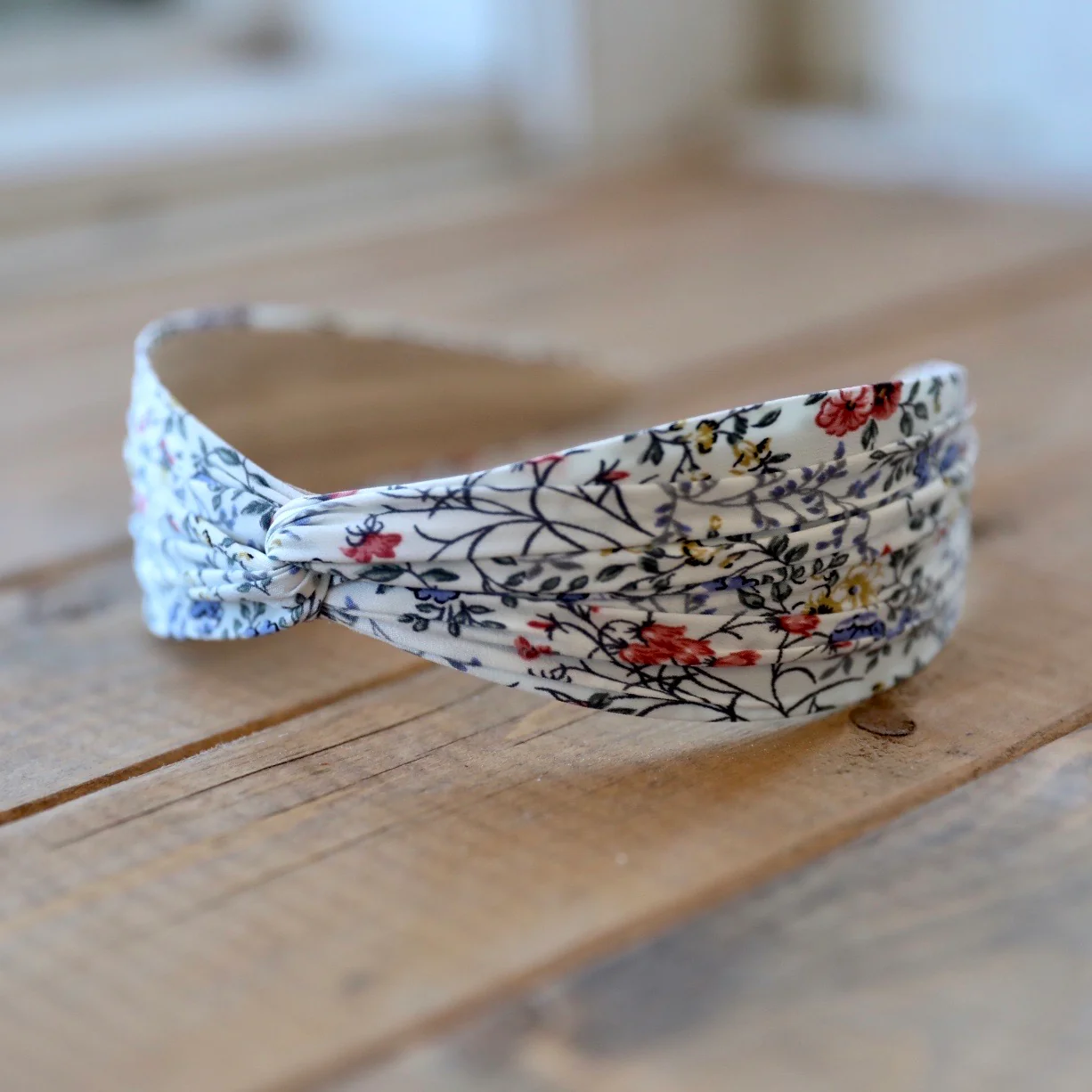Our headbands have a thin metal band for structure and a textured nonslip backing. They do not pinch and won’t squeeze. They’re just right!