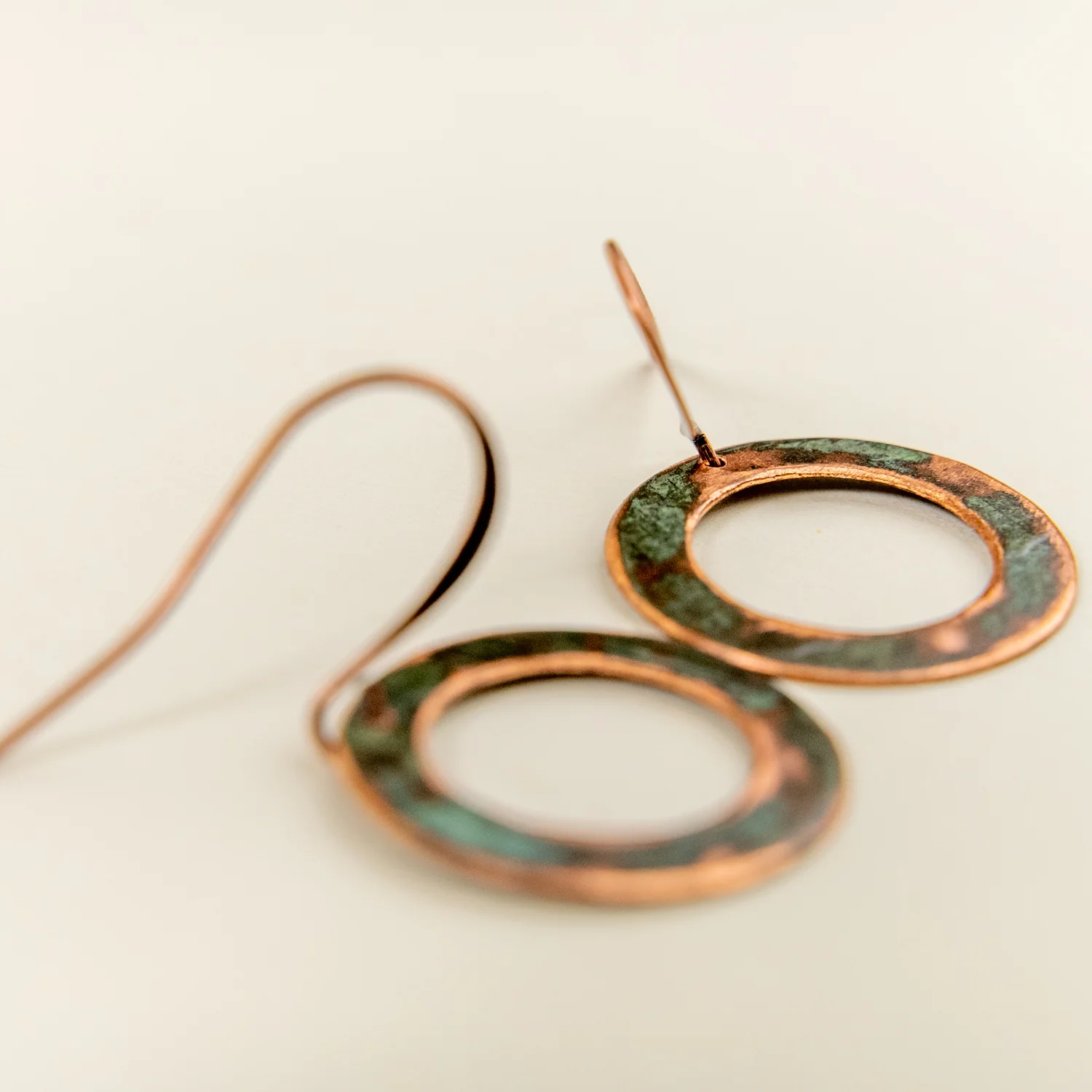 These limited edition earrings are upcycled from a naturally patinaed copper roof once located in Laurel’s Historic District. Handcrafted from start to finish ~ Take home a piece of America’s Hometown. Each design was inspired by a different architectural roof style.